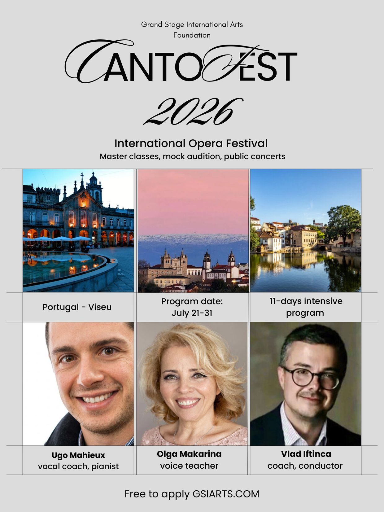 CantoFest 2026, Viseu is 11 day’s intensive program. If you need to sharpen your vocal technique, develop your artistic identity and work on your repertoire.
