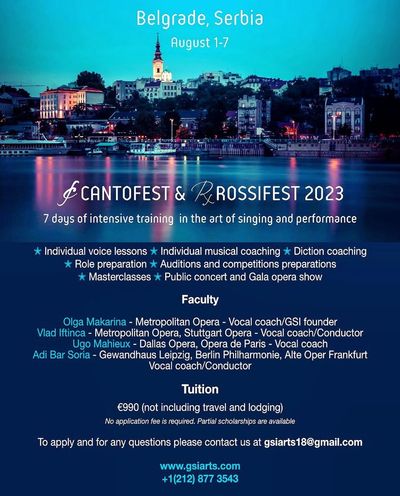 Cantofest is an opera festival organized by Grand Stage International Arts Foundation with RossiFest in Belgrade, Serbia
